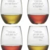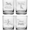- Design details: Each glass in this set of four is sand etched with a different humorous pet themed design. With a different design on each glass, everyone will know whose glass belongs to whom. They’re the perfect gift for dog lovers