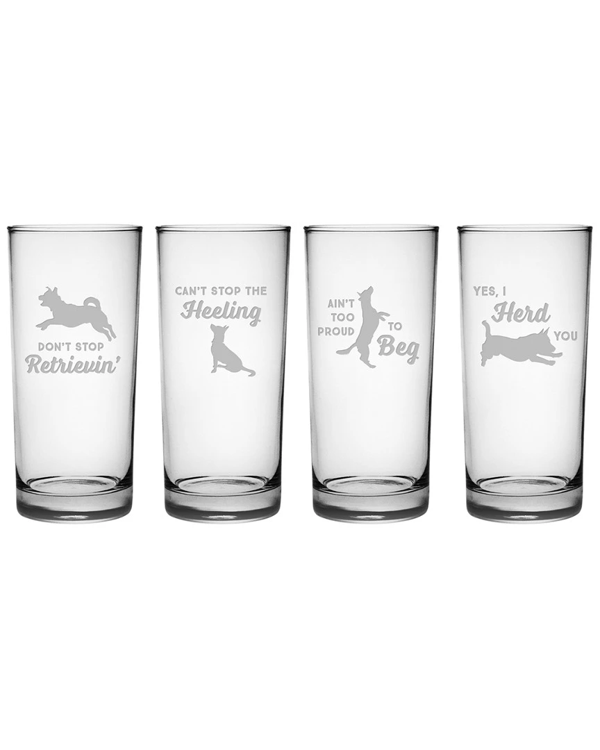 Susquehanna Glass 15oz Clever Canine Assortment Hiball Set Of 4 Home Bar Carts & Accessories