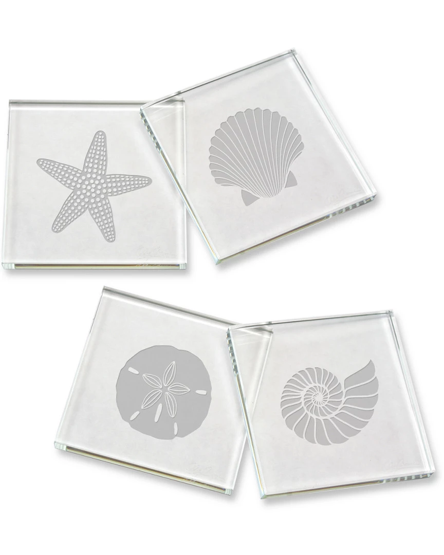 Susquehanna Glass 3.75in Seashore Set Of 4 Coasters Home Bar Carts & Accessories