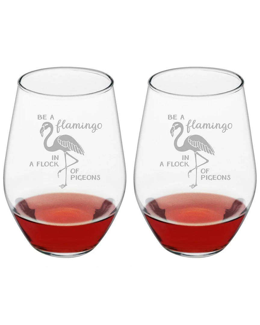 Susquehanna Glass Be A Flamingo Stemless Wine Glasses Home Bar Carts & Accessories