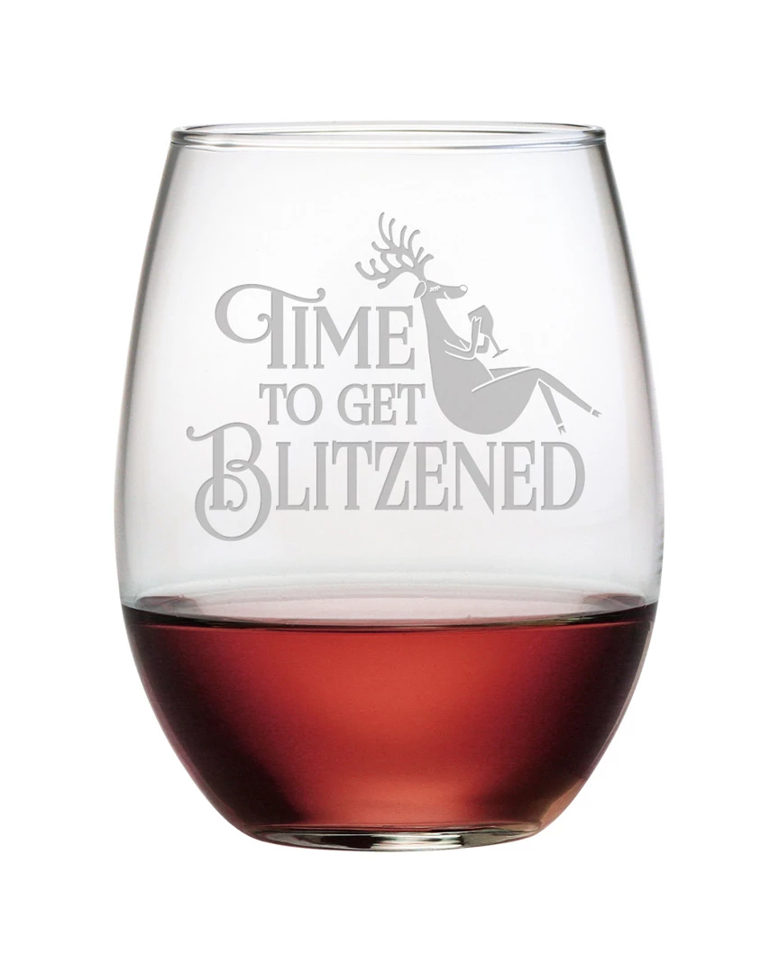 - Each 21oz stemless tumbler in this set of four features a hand etched ‘Blitzened’ design.