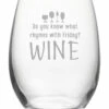 - Less prone to breakage than its stemmed counterparts, this 21-ounce stemless tumbler features a deeply sand etched design. The playful printed box offers a striking presentation for gift giving. Made and decorated in the USA.