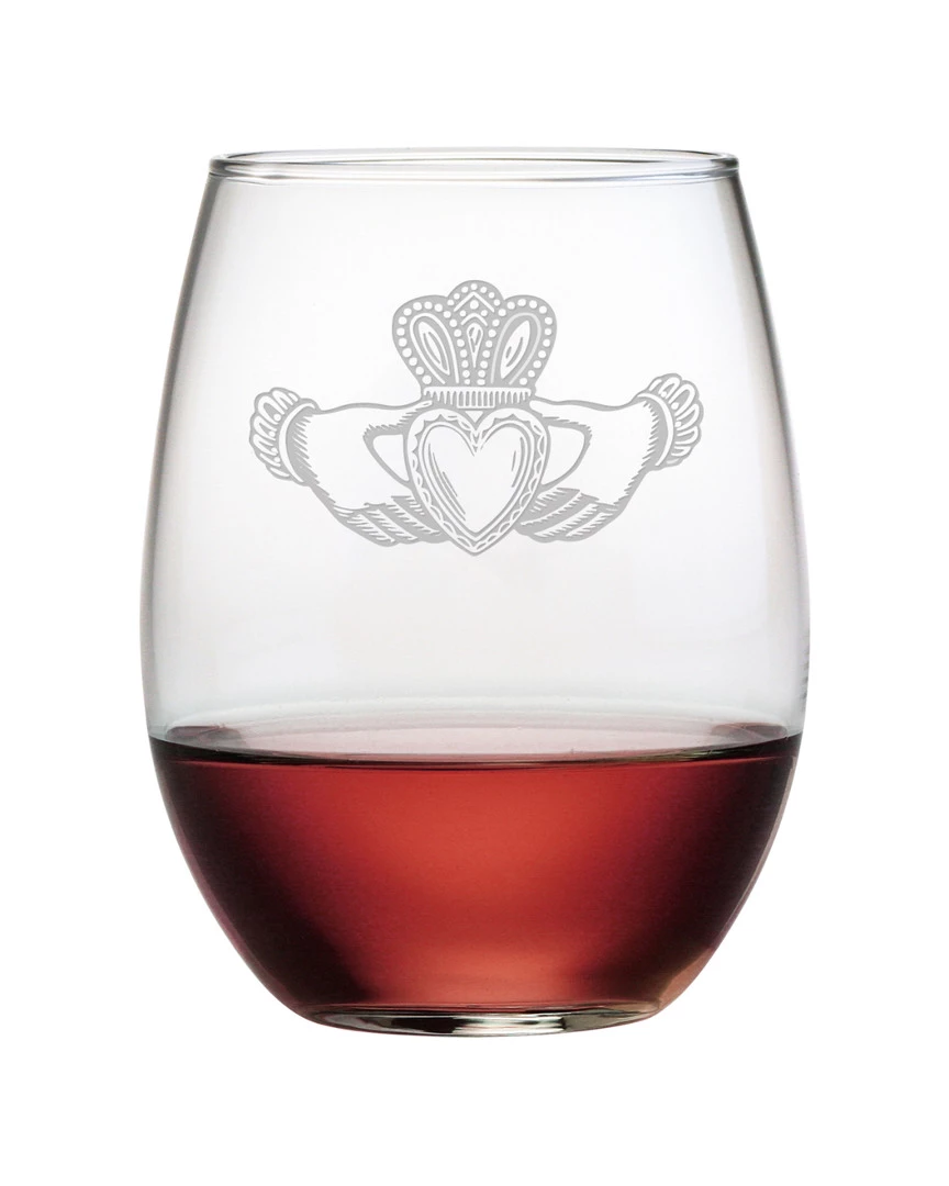 Susquehanna Glass Claddagh Set Of 4 21oz Stemless Wine Glasses Home Bar Carts & Accessories