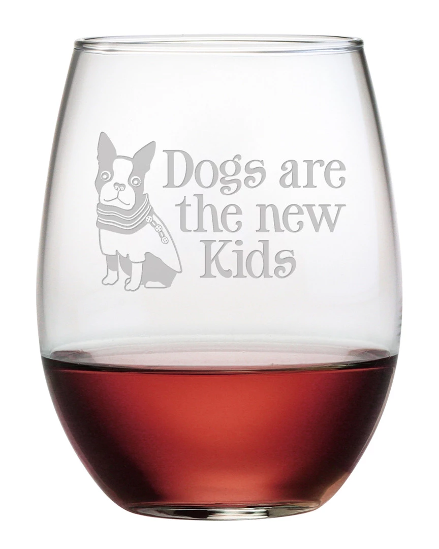 Susquehanna Glass Dogs Are The New Kids Set Of 4 21oz Stemless Wine Glasses Home Pet Supplies