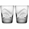 - Set of four stemless wine glasses with hand-etched “drink up witches!” design