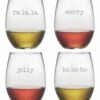 Susquehanna Glass “Eat, Drink, Be Merry” Set Of 4 21oz Stemless Wine Glasses Home Bar Carts & Accessories