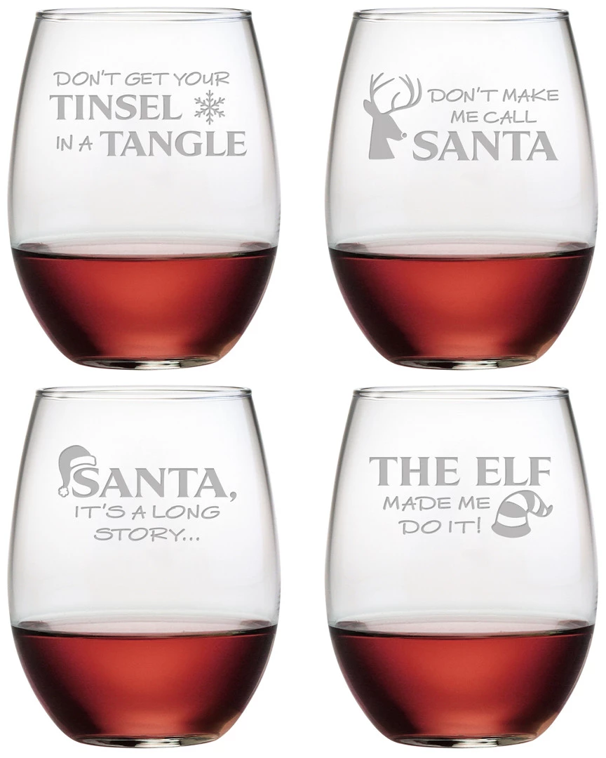 Susquehanna Glass Holiday Hijinks Set Of 4 Stemless Wine Glasses 21oz Home Drinkware