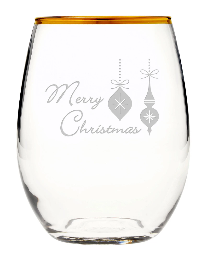 Susquehanna Glass Merry Christmas Set Of 4 Stemless Wine Glasses 21oz Home Linens