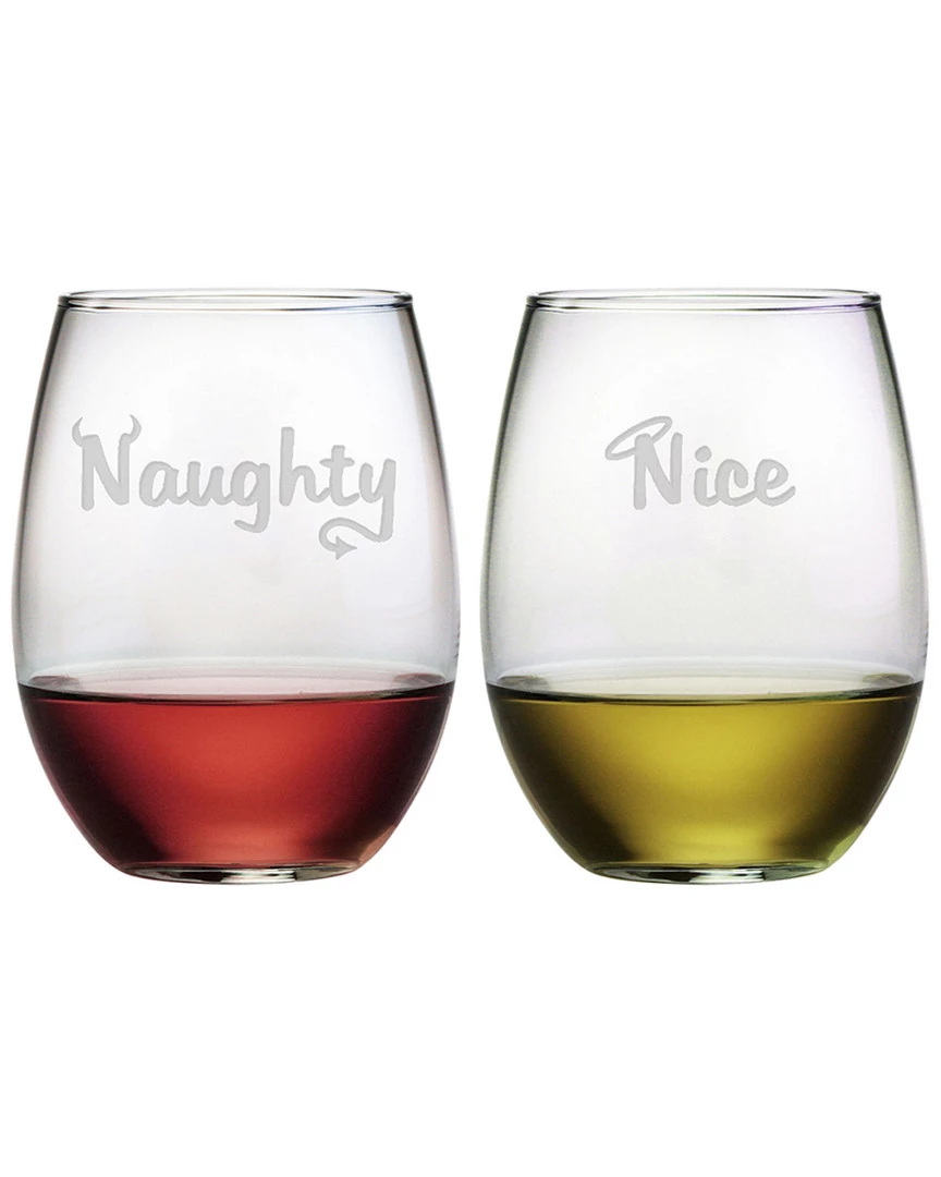 Susquehanna Glass Naughty & Nice Set Of Two 21oz Stemless Wine Glasses Home Bar Carts & Accessories