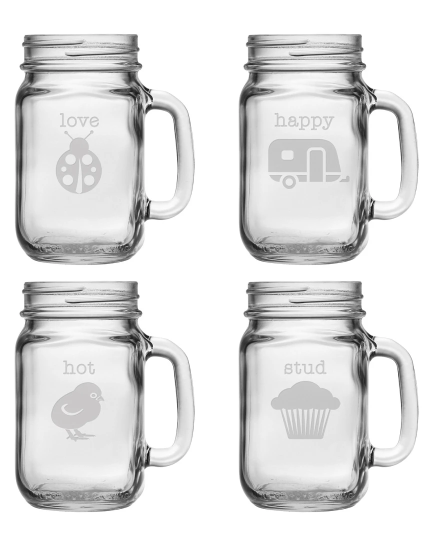 Susquehanna Glass Pet Names Set Of 4 16oz Mason Jars Home Bar Carts & Accessories