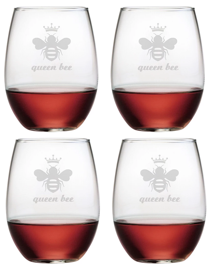 Susquehanna Glass Queen Bee Set Of Four 21oz Stemless Wine Glasses Home Bar Carts & Accessories