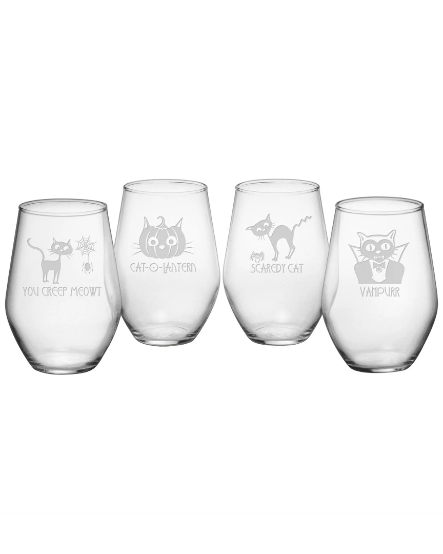 Susquehanna Glass Scaredy Cat Assortment Set Of 4 19oz Stemless Wine Glasses Home Pet Supplies