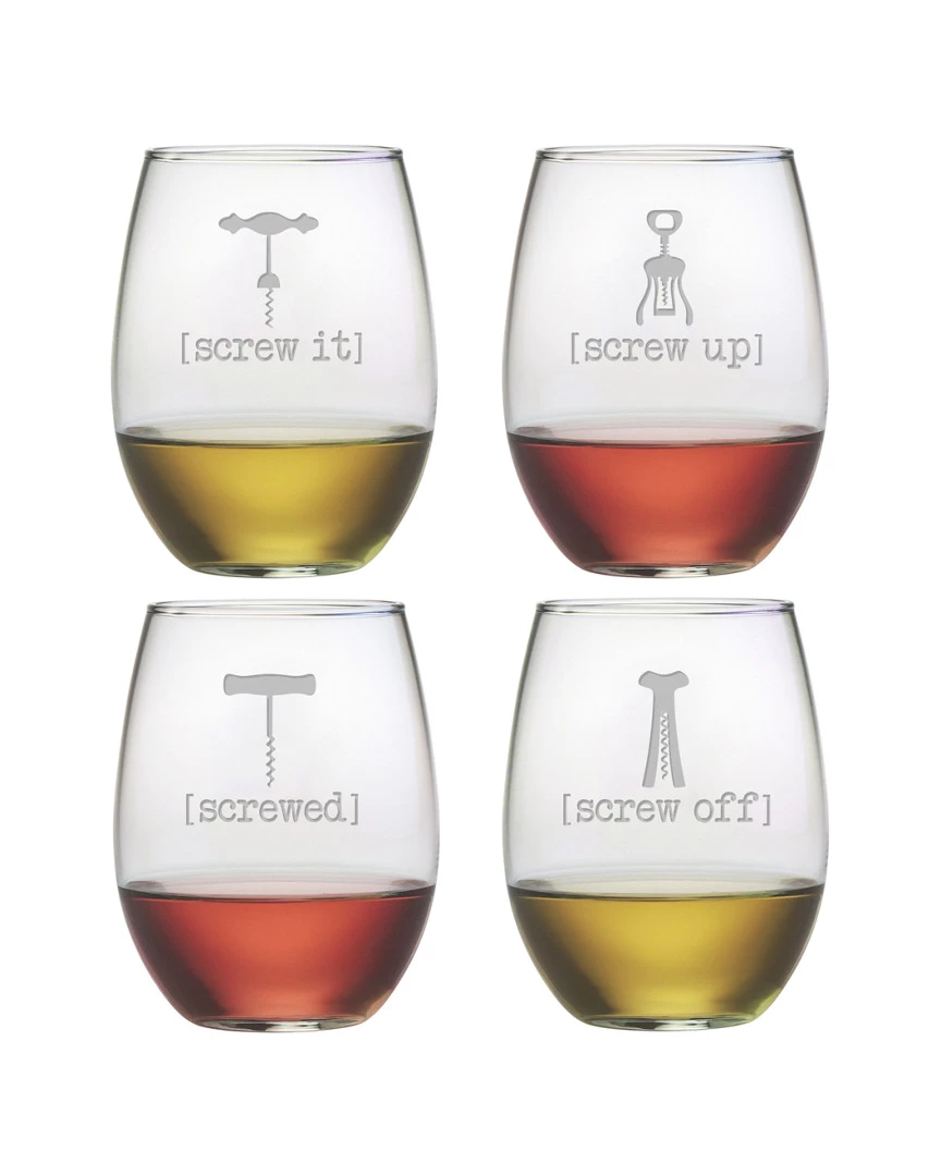 Susquehanna Glass Screw It Set Of Four 21oz Stemless Wine Glasses Home Drinkware