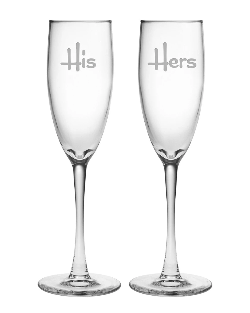 Susquehanna Glass Set Of 2 His & Hers Champagne Flute Glasses Home Drinkware