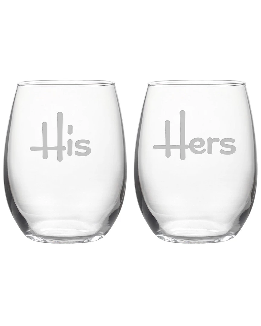 Susquehanna Glass Set Of 2 His & Hers Stemless Wine Glasses Home Drinkware