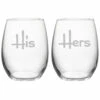 - Design details: Offering a contemporary alternative to their stemmed counterparts, these 21-ounce stemless tumblers are each sand etched with a different typographic design, making a perfect gift for weddings, showers, and anniversaries. Enjoy both water, wine, juice or cocktails in these versatile glasses.