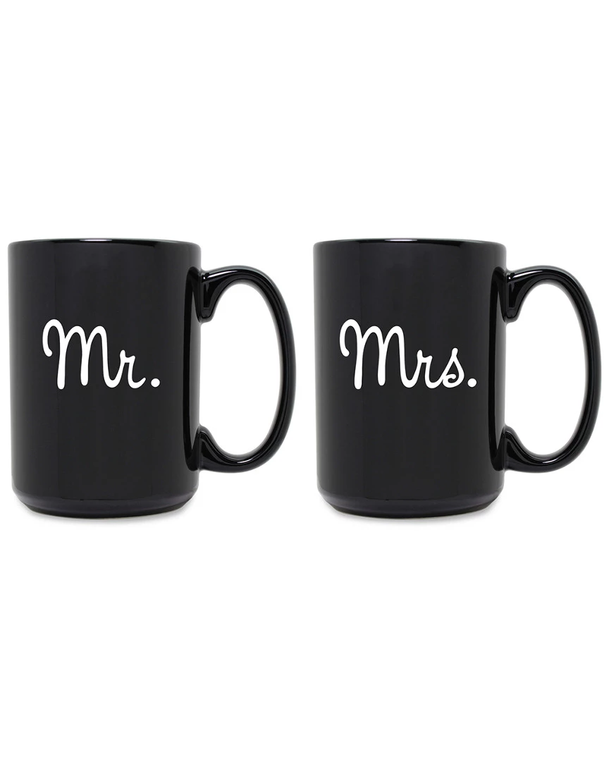 Susquehanna Glass Set Of 2 Mr. & Mrs. Grande Black Mugs Home Drinkware