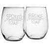- Design details: Versatile enough for water, wine, and juice, each 21-ounce stemless tumbler in this set of two features a sand etched design. The stemless design means they’re dishwasher safe and less prone to breakage than their stemmed counterparts.