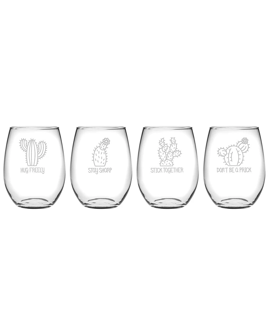 Susquehanna Glass Set Of 4 Advice From A Cactus Assortment Stemless Wine Home Bar Carts & Accessories