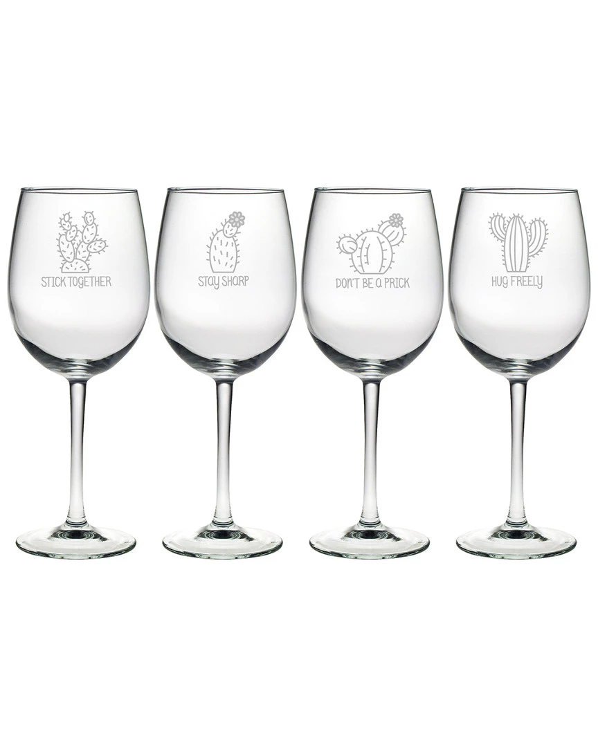 Susquehanna Glass Set Of 4 Advice From A Cactus Assortment Wine Glass Home Bar Carts & Accessories