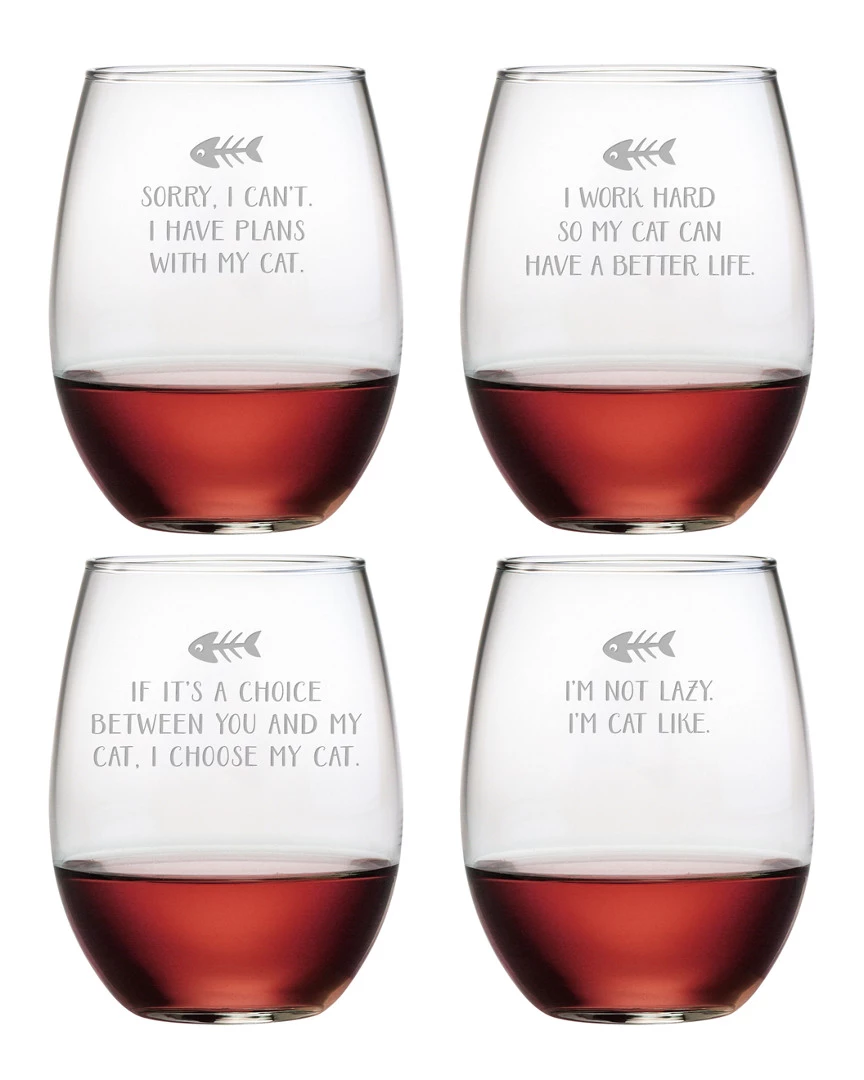 Susquehanna Glass Set Of 4 Cat Tales Assortment Stemless Wine Tumblers Home Pet Supplies