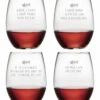 - Design details: Versatile enough for water, wine, and juice, each 21-ounce stemless tumbler in this set of four features the a sand etched design. The stemless shapes means they’re dishwasher safe and less prone to breakage than their stemmed counterparts. Made and decorated in the USA.