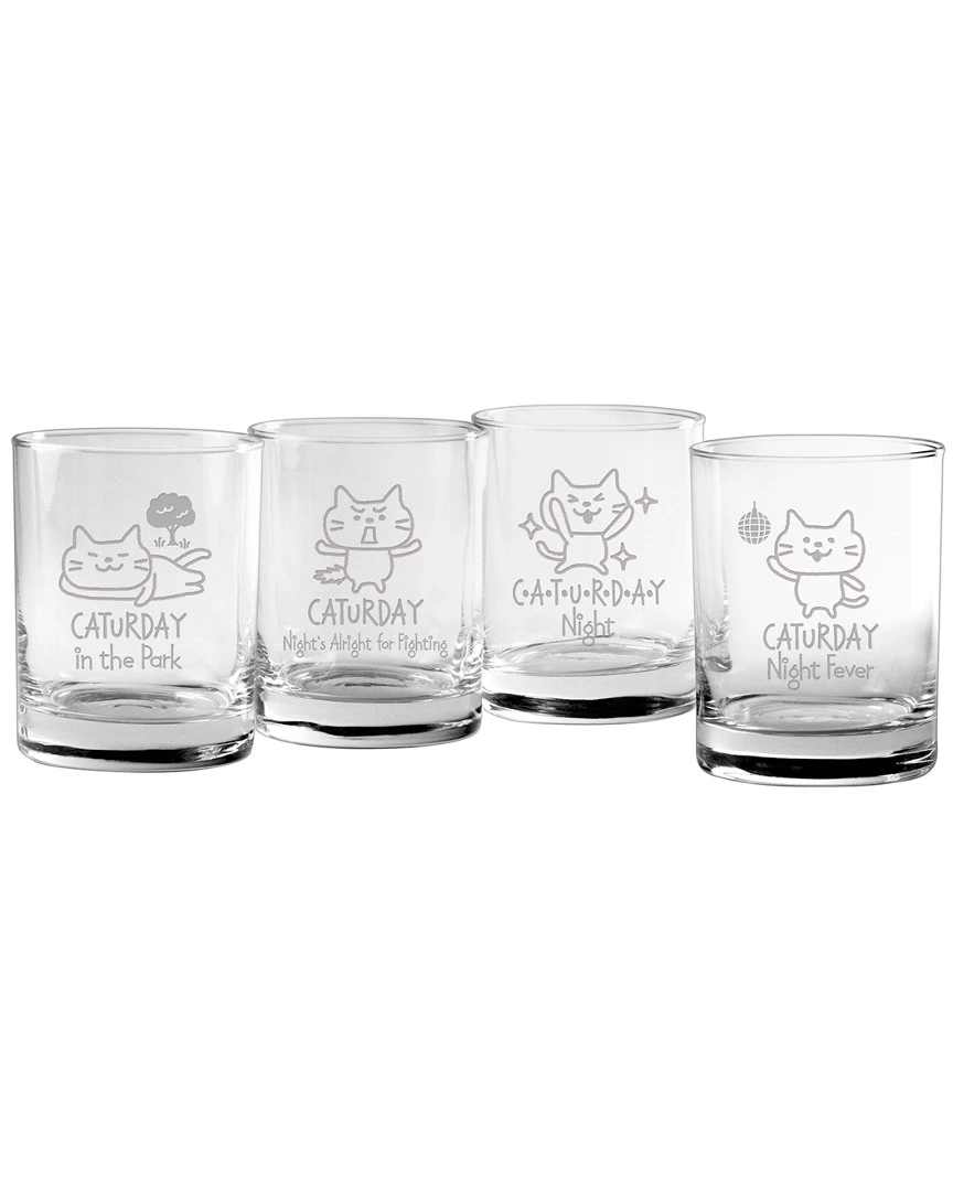 Susquehanna Glass Set Of 4 Caturday Assortment Rocks Glasses Home Dinnerware