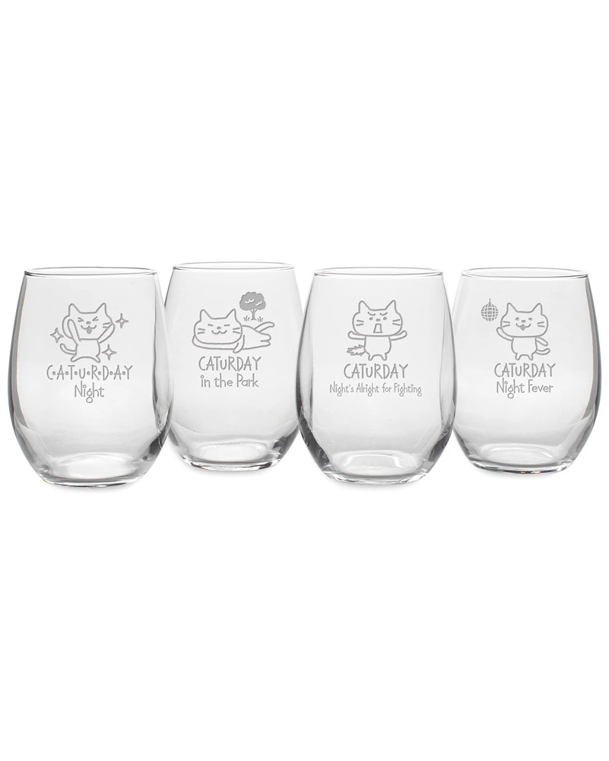 Susquehanna Glass Set Of 4 Caturday Night Assortment Stemless Wine Tumblers Home Pet Supplies