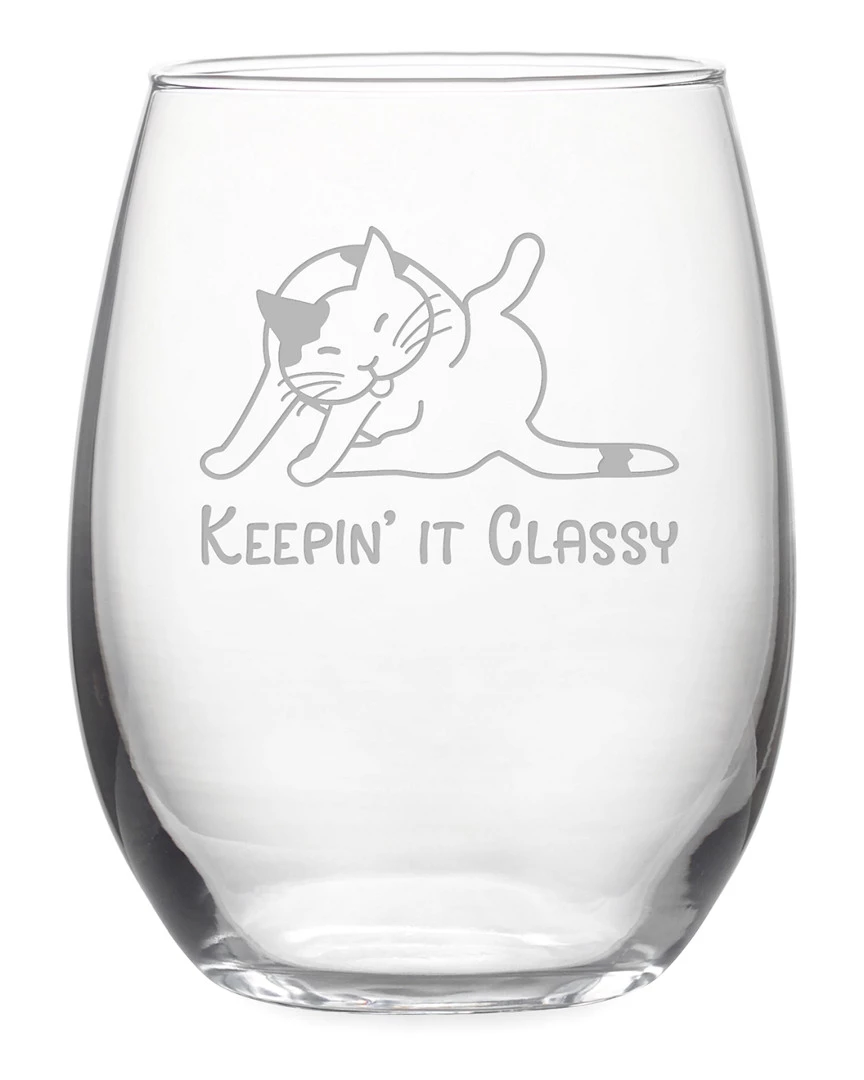 Susquehanna Glass Set Of 4 Classy Cat Stemless Wine Tumblers Home Pet Supplies