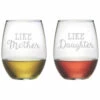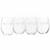 - Design details: Versatile enough for water, wine, and juice, each 21-ounce stemless tumbler in this set of four features the a sand etched design. The stemless shapes means they’re dishwasher safe and less prone to breakage than their stemmed counterparts. Made and decorated in the USA.