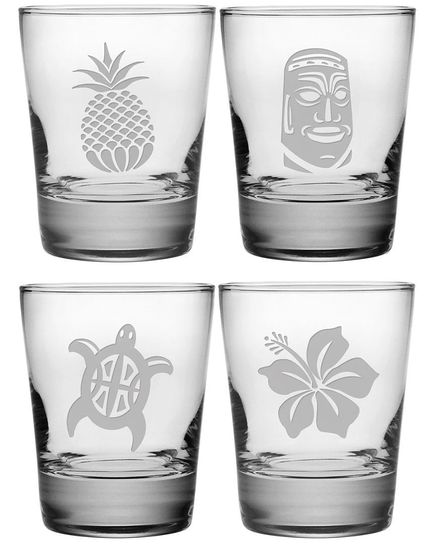 Susquehanna Glass Set Of 4 Hawaiian Icons Assortment Heavy Based DOF Glasses Home Bar Carts & Accessories