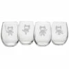 - Design details: Versatile enough for water, wine, and juice, each 21-ounce stemless tumbler in this set of four features the a sand etched design. The stemless shapes means they’re dishwasher safe and less prone to breakage than their stemmed counterparts. Made and decorated in the USA.