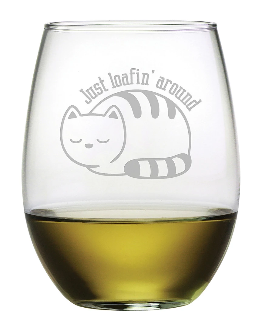 Susquehanna Glass Set Of 4 Just Loafin’ Around Stemless Wine Tumblers Home Games & Giftables