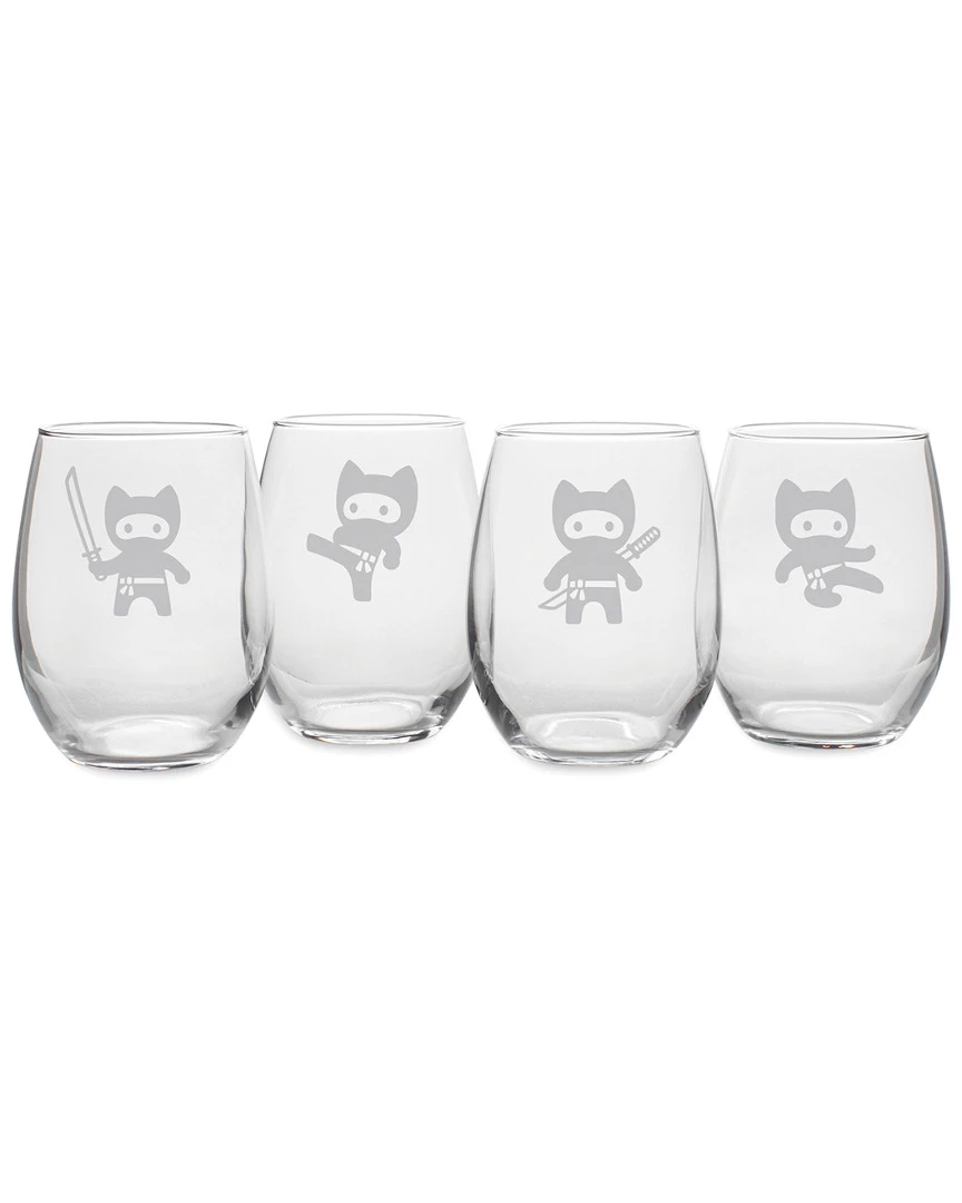 Susquehanna Glass Set Of 4 Kitty Ninja Assortment Stemless Wine Tumblers Home Games & Giftables