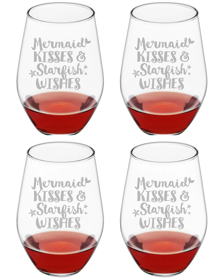 Susquehanna Glass Set Of 4 Mermaid Kisses Stemless Wine Glasses Home Bar Carts & Accessories