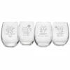 - Design details: Versatile enough for water, wine, and juice, each 21-ounce stemless tumbler in this set of four features the a sand etched design. The stemless shapes means they’re dishwasher safe and less prone to breakage than their stemmed counterparts. Made and decorated in the USA.