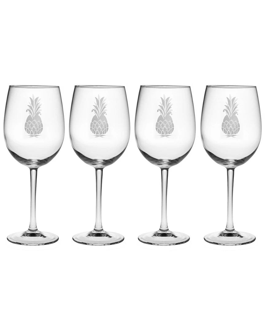 Susquehanna Glass Set Of 4 Pineapple Handcut Wine Glasses Home Bar Carts & Accessories