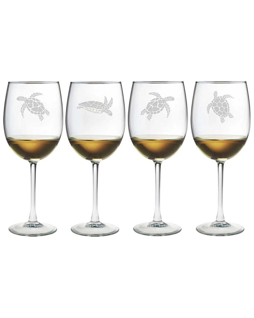 Susquehanna Glass Set Of 4 Sea Turtles Wine Glasses Home Bar Carts & Accessories