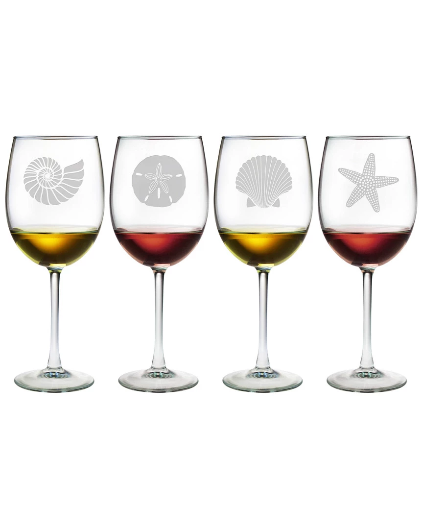 Susquehanna Glass Set Of 4 Seashore 19oz Wine Glasses Home Bar Carts & Accessories