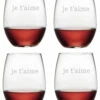 - Set of four hand-decorated stemless wine glasses