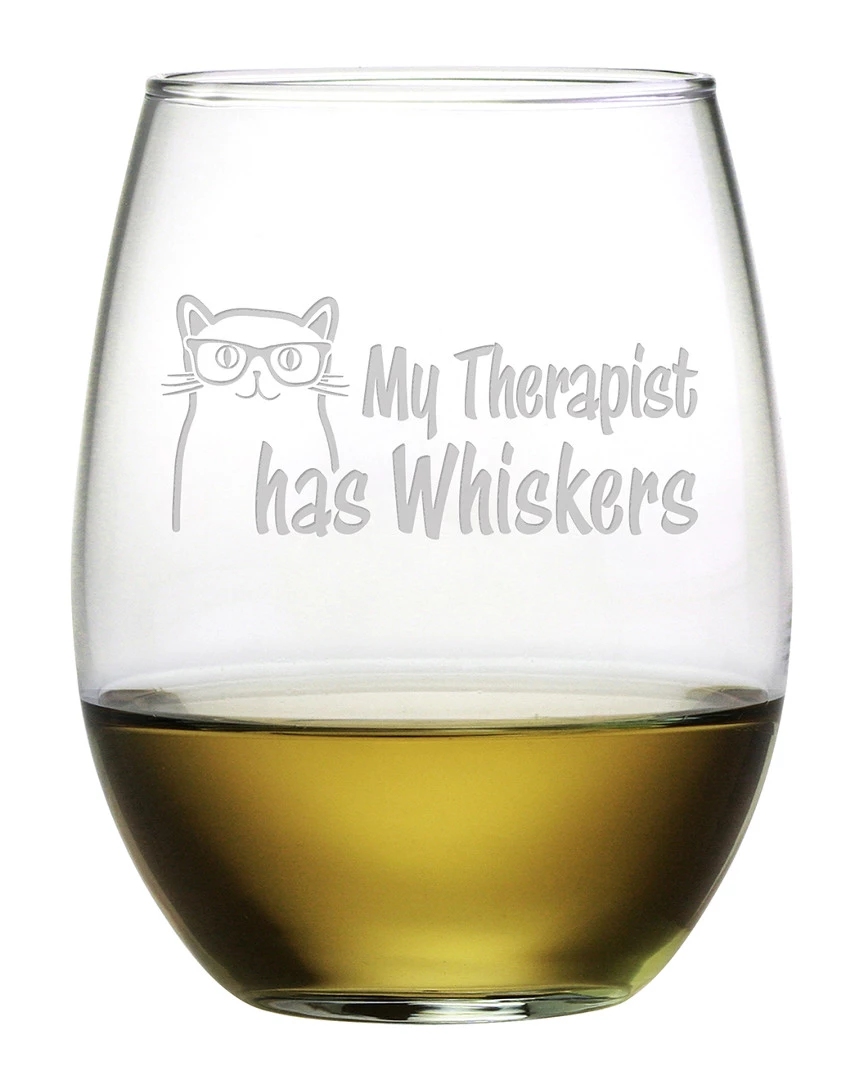 Susquehanna Glass Set Of 4 Therapist Has Whiskers Stemless Wine Tumblers Home Bar Carts & Accessories