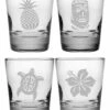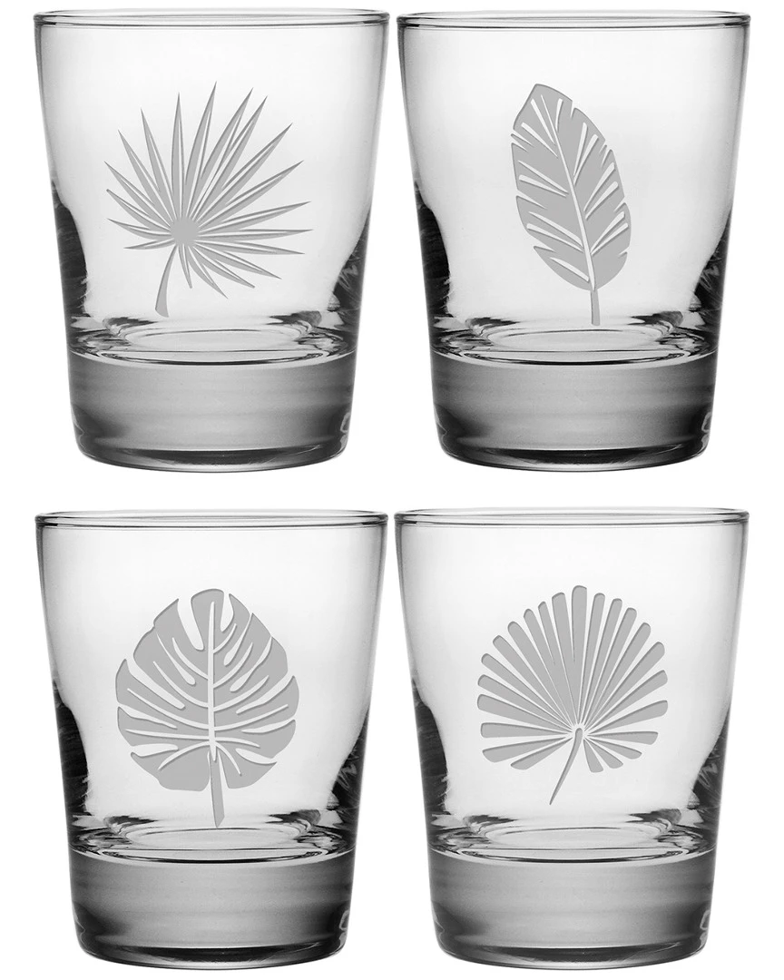 Susquehanna Glass Set Of 4 Tropical Foliage Assortment Heavy Based DOF Glasses Home Bar Carts & Accessories