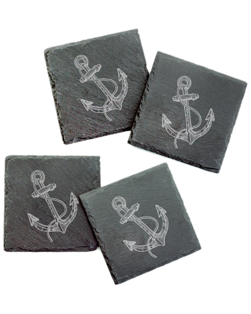 Susquehanna Glass Set Of 4 Vintage Anchor Square Slate Coasters Home Bar Carts & Accessories