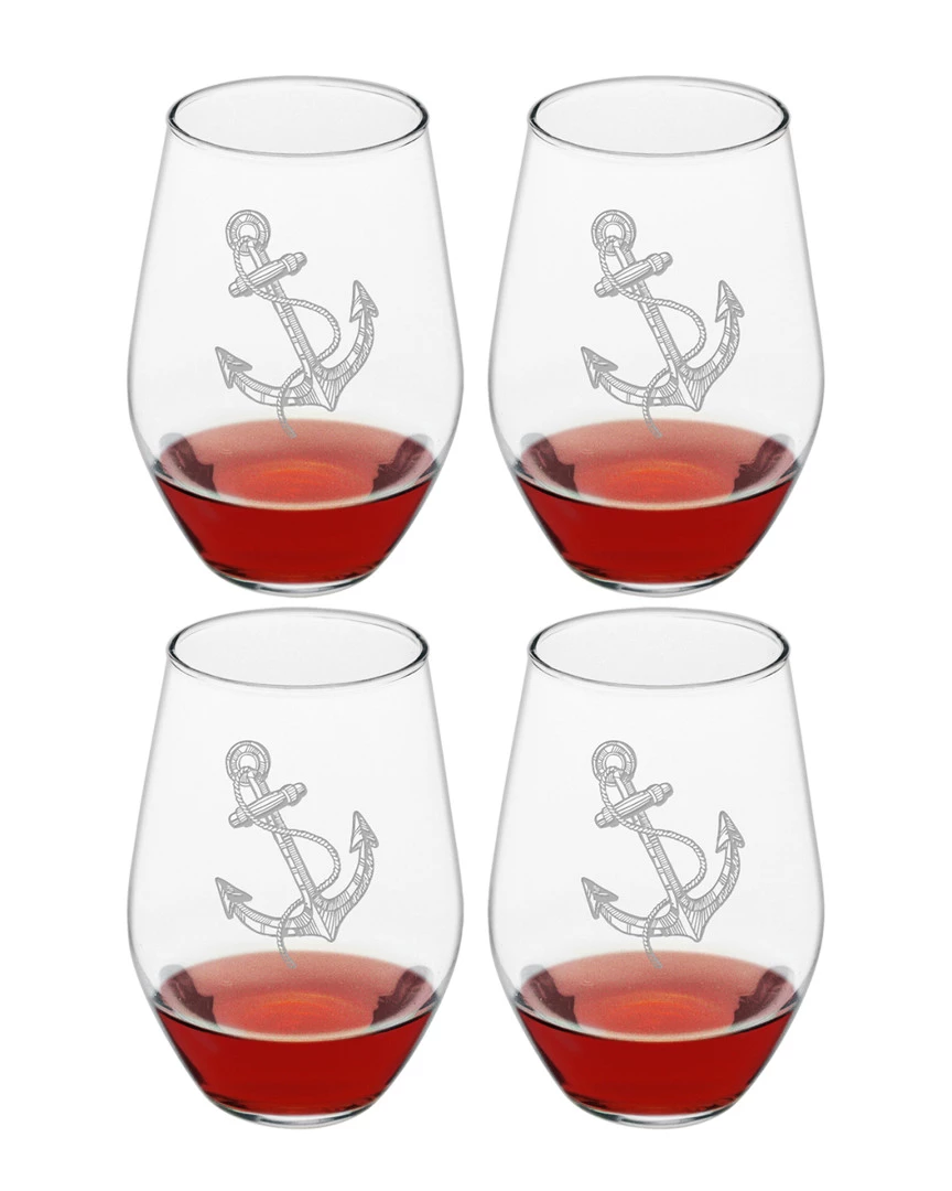 Susquehanna Glass Set Of 4 Vintage Anchor Stemless Wine Glasses Home Bar Carts & Accessories