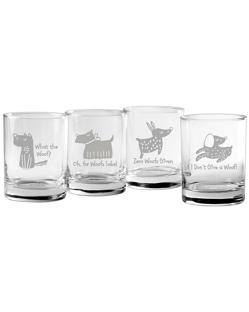 Susquehanna Glass Set Of 4 What The Woof Assortment Rocks Glasses Home Dinnerware