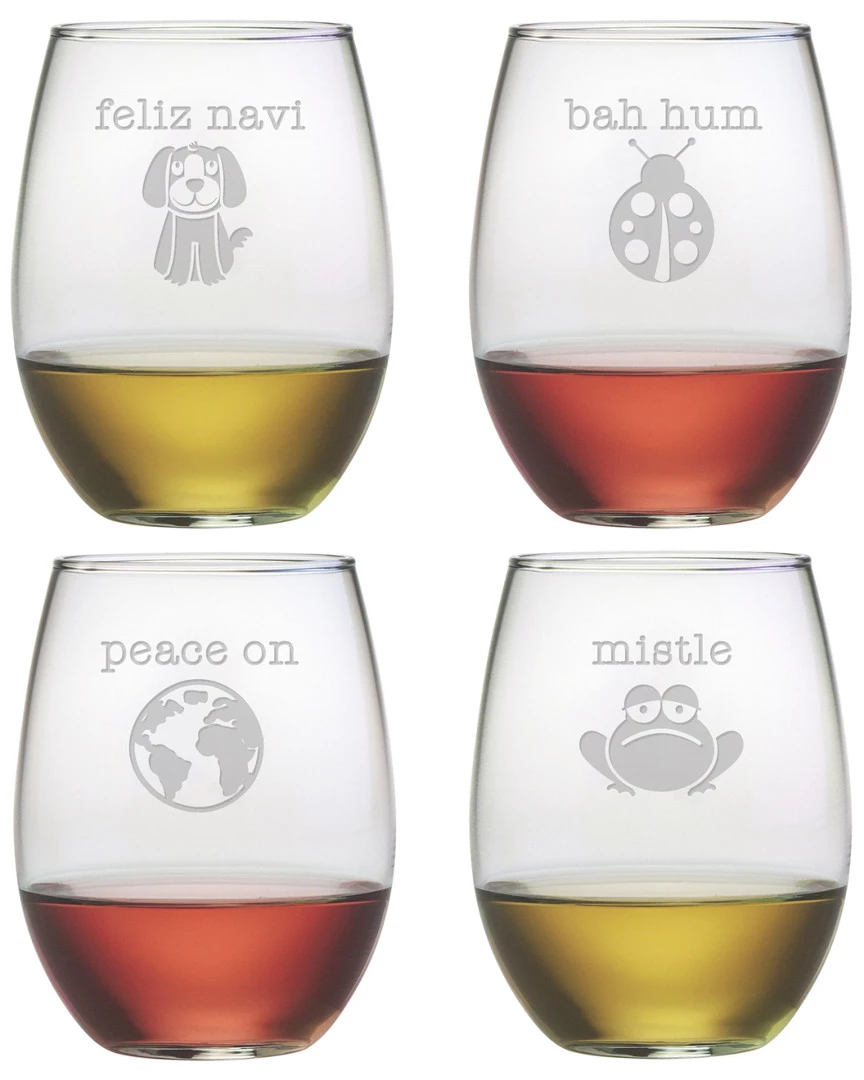 Susquehanna Glass Set Of Four 21oz Punny Christmas Stemless Glasses Home Bar Carts & Accessories