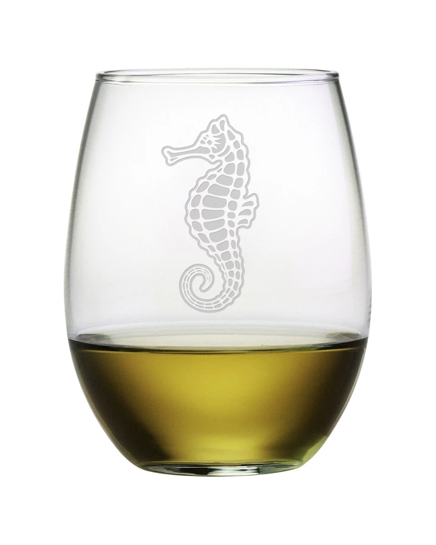 Susquehanna Glass Set Of Four Sea Horse 21oz Stemless Wine Glasses Home Bar Carts & Accessories