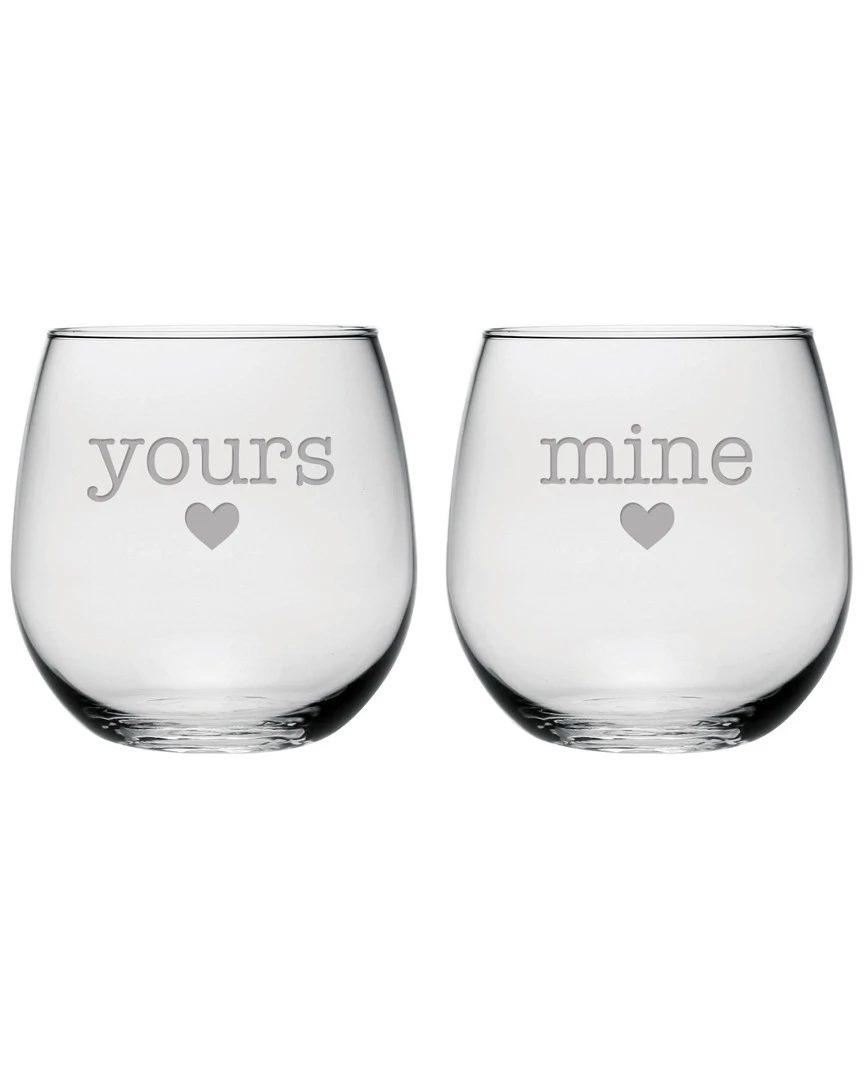 Susquehanna Glass Set Of Two 16.75oz Yours & Mine Stemless Wine Glasses Home Bar Carts & Accessories
