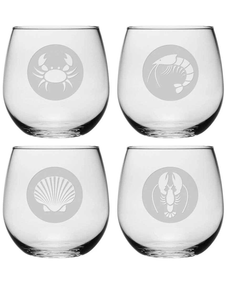Susquehanna Glass Susquehanna Glass Clambake Set Of Four 16.75oz Stemless Glasses Home Bar Carts & Accessories