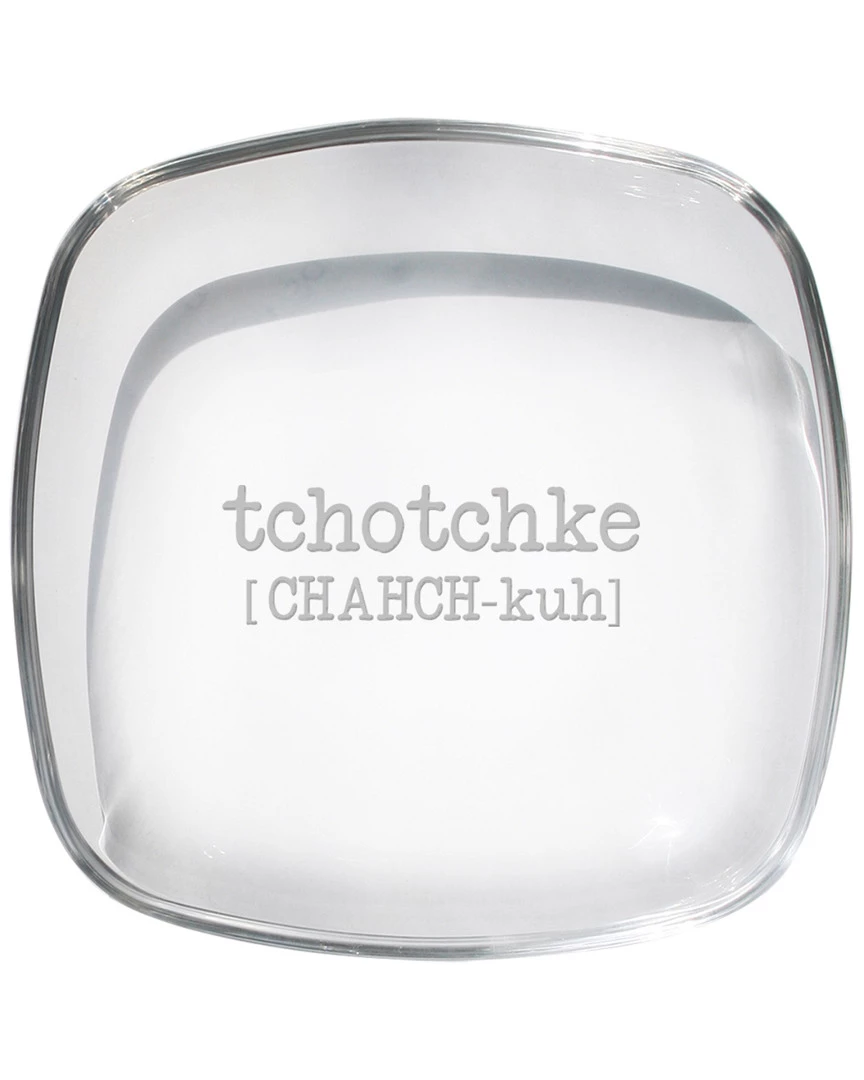 - Each sturdy plate is sand etched from the bottom with a “Tchotchke ” design
